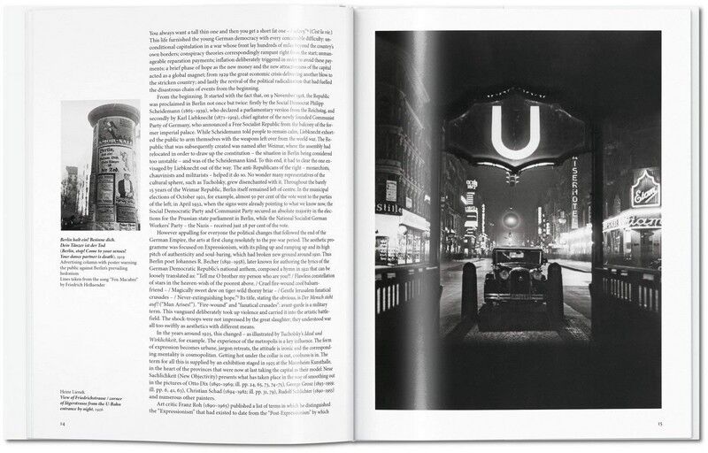 This book immerses readers in the freewheeling spirit of Berlin’s Weimar age. Through exemplary works in painting, sculpture, architecture, graphic design, photography, and film, we uncover the innovations, ideas, and precious dreams that characterized this unique cultural window. We take in the jazz bars and dance halls; the crowded kinos and flapper fashion; the advances in technology and transport; the radio towers and rumbling trams and trains; the soaring buildings; the cinematic masterworks; and the newly independent women who smoked cigarettes, wore their hair short, and earned their own money.
