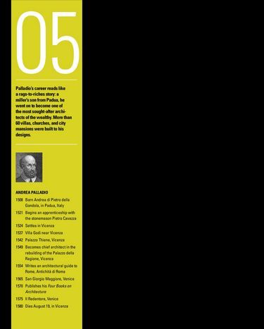 Огляд | Now available in a new edition, this introduction to fifty visionary architects traces the major aesthetic movements over the past six centuries and offers concise portraits of the geniuses behind them. Starting with the Renaissance, this accessible and живий survey takes readers around the world and through history from Filippo Brunelleschi through Antoni Gaudi? to Frank Gehry. Double-page spreads feature full-color illustrations, informative sidebars, and a timeline. A concise and accessible architectural |