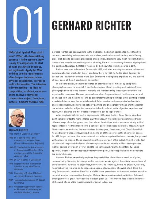 Now available in a new edition, this survey of great contemporary artists is the perfect introduction to the exciting world of art today.From painters and photographers to sculptors and performance artists, fifty of the most influential contemporary artists are profiled in this colorful and engaging book that traces the various artistic movements and radical changes of the second half of the twentieth century. Presented chronologically, each artist is featured in one or two double page spreads that include brilliant reproductions of their most important works, a succinct text about their work and life, an insightful biography with key dates in their career, and informative background on major developments in the art world. As diverse and inspiring as the artists themselves, this book is a voyage of discovery into art’s cutting edge.