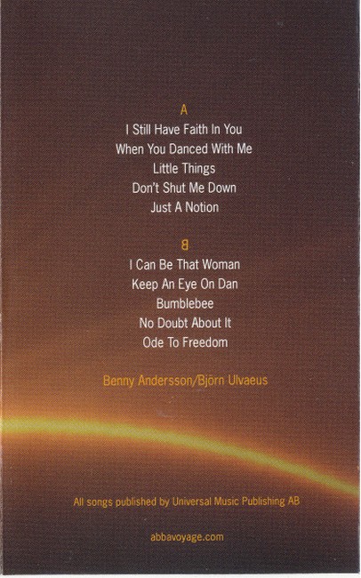 Voyage is the ninth and final studio album by the Swedish pop group ABBA, released 5 November 2021. With ten songs written by Benny Andersson and Bjorn Ulvaeus, it is the group's first album of new material in forty years. It is also the first album without long-time bassist Rutger Gunnarsson and drummer Ola Brunkert.