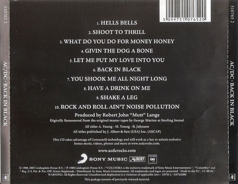 Фірмовий CD-дискBack in Black is the seventh studio album by Australian rock band AC/DC, released by Albert Productions and Atlantic Records on 25 July 1980. It was the band's first album to feature Brian Johnson as lead singer, following the death of Bon Scott, their previous vocalist.