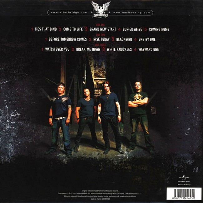 Фірмова вінілова платівка (VINYL)Blackbird is the second studio album by American rock band Alter Bridge, released on October 5, 2007. The first single, "Rise Today", was released on July 30, 2007. The album peaked at number 13 on the Billboard 200, selling 47,000 copies in its first week on the charts. As of December 2008, Blackbird has sold 227,000 copies. Despite receiving poor marketing and generally low mainstream success, initial critical reception towards the album was mostly positive, with music critics praising the songwriting and musicianship. The album was certified Gold by the British Phonographic Industry.