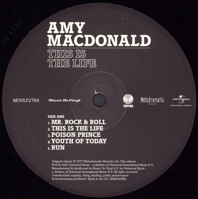 Фірмова вінілова платівка (VINYL)This Is the Life is the debut studio album by British singer-songwriter Amy Macdonald, released on 30 July 2007. It reached number one on the UK Albums Chart on 13 January 2008 and sold over 900,000 copies in the UK as of February 2017, awarding the album a certification of 3? Platinum.