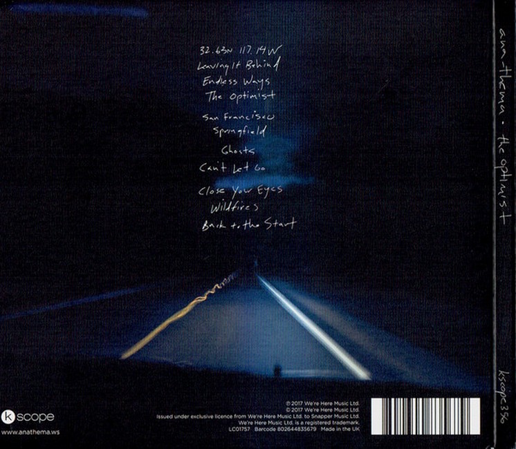 Фірмовий CD диск (CD)The Optimist is the eleventh album by rock band Anathema. The album was released on 9 June 2017, through Kscope, three years after their last release, Distant Satellites. The idea for The Optimist originated from the cover artwork of the album A Fine Day to Exit (2001). The coordinates from the first track are pointing to Silver Strand beach in San Diego County, the location that is shown on the cover of A Fine Day to Exit. The Optimist won "Album of the Year" at the 2017 Progressive Music Awards. It is the final album featuring bassist Jamie Cavanagh before he left the band a second time in 2018. It was the band's second UK Top 40 success, peaking at #34.