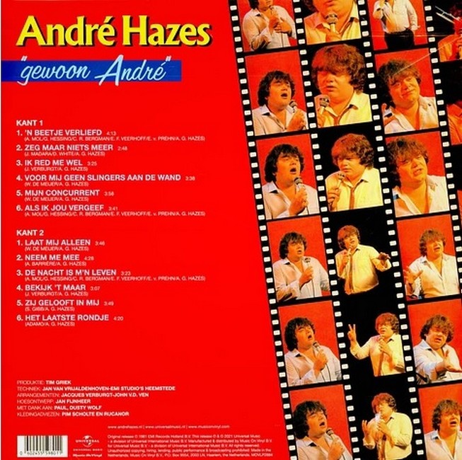 Фірмова вінілова платівка (VINYL)Andre Gerardus Hazes (30 June 1951 – 23 September 2004) was a Dutch singer and actor. As an accomplished levenslied singer, Hazes recorded 36 studio and live albums, and 55 singles prior to his death in 2004. His music is still well-known in the Netherlands and Flanders, known for sentimental and simple lyrics.