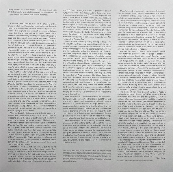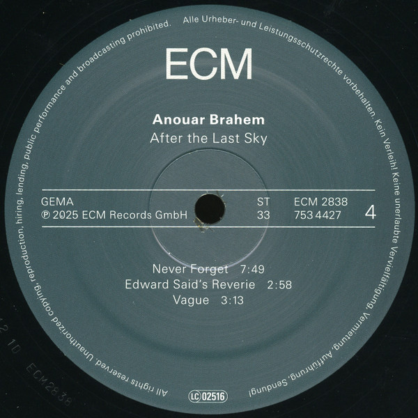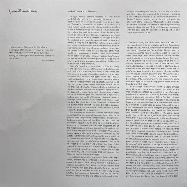 "After The Last Sky" – це не просто альбом, це подорож крізь лабіринти емоцій і звуків, створений майстрами своєї справи: Anouar Brahem, Anja Lechner, Django Bates і Dave Holland. Видано у 2025 році легендарним ECM Records, цей двоплатівковий вініл відкриває перед слухачем віртуозний світ Contemporary Jazz з елементами Folk і World Music.