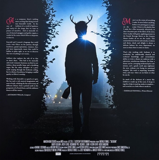 Фірмова вінілова платівка (VINYL)The soundtrack to the 2023 film Saltburn, directed by Emerald Fennell, consists of a score composed by Anthony Willis, as well as an number of pop songs. Willis had previously scored Fennell's Promising Young Woman (2020) and also M3GAN (2022). Saltburn (Original Motion Picture Score) features 18 cues from his score and was released by Milan Records on the same date as its international release, 17 November 2023. The soundtrack album, Saltburn (Music from the Motion Picture), was released on 28 June 2024.