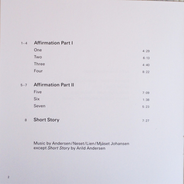 Arild Andersen, норвезький контрабасист і композитор, відомий своїм новаторським підходом до джазу, знову здивував. Його гурт забезпечує унікальне поєднання free improvisation і contemporary jazz, що робить "Affirmation" музично різноманітним та інтригуючим.