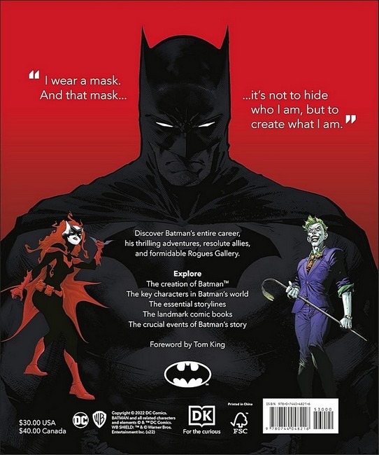 Packed with information on the Dark Knight, including his creation and evolution over the decades, this in-world celebration of DC's most popular Super Hero explores Batman's motives and drives, his incredible array of weapons and vehicles, his "family" of allies, and his roster of menacing Super-Villains, including The Joker, Catwoman, Harley Quinn, The Riddler, The Penguin, Bane, Scarecrow, Killer Croc, and many more.