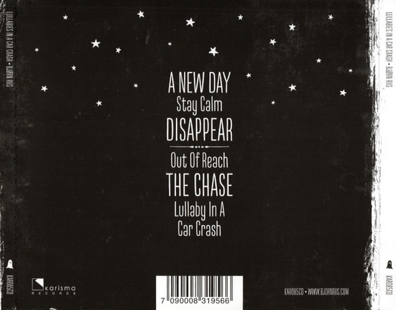 Фірмовий CD-дискBjorn Riis is releasing his first solo recording ‘Lullabies in a Car Crash’ on Karisma Records November 3rd 2014. The album is very much a personal statement, with lyrics dealing with fear of abandonment, alienation and loss. It’s also homage to many of Bjorn’s musical influences.