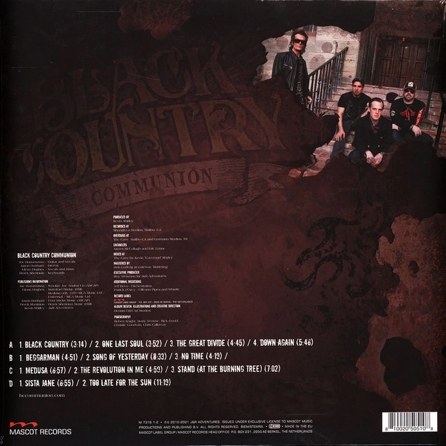 Фірмова вінілова платівка (VINYL)Black Country Communion is the self-titled debut studio album by English–American hard rock band Black Country Communion. Recorded between January and April 2010, primarily at Shangri-La in Malibu, California, it was produced by Kevin Shirley and released in Europe by Mascot Records on September 20, 2010, and in North America by J&R Adventures the following day. The album reached number 13 on the UK Albums Chart and number 54 on the US Billboard 200.