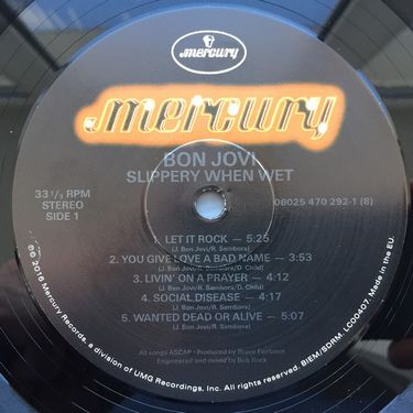Фірмова вінілова платівка (VINYL)Slippery When Wet is the third studio album by American rock band Bon Jovi, released on August 18, 1986, by Mercury Records in North America and Vertigo Records internationally. It was produced by Bruce Fairbairn, with recording sessions taking place between January and July 1986 at Little Mountain Sound Studios in Vancouver. The album features many of Bon Jovi's best-known songs, including "You Give Love a Bad Name", "Livin' on a Prayer", and "Wanted Dead or Alive".