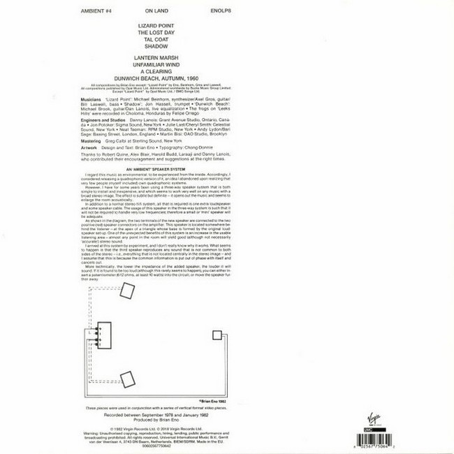 Фірмова вінілова платівка (VINYL)Ambient 4: On Land is the eighth solo studio album by British ambient musician Brian Eno. Released in 1982, it was the final edition in Eno's ambient series, which began in 1978 with Music for Airports.