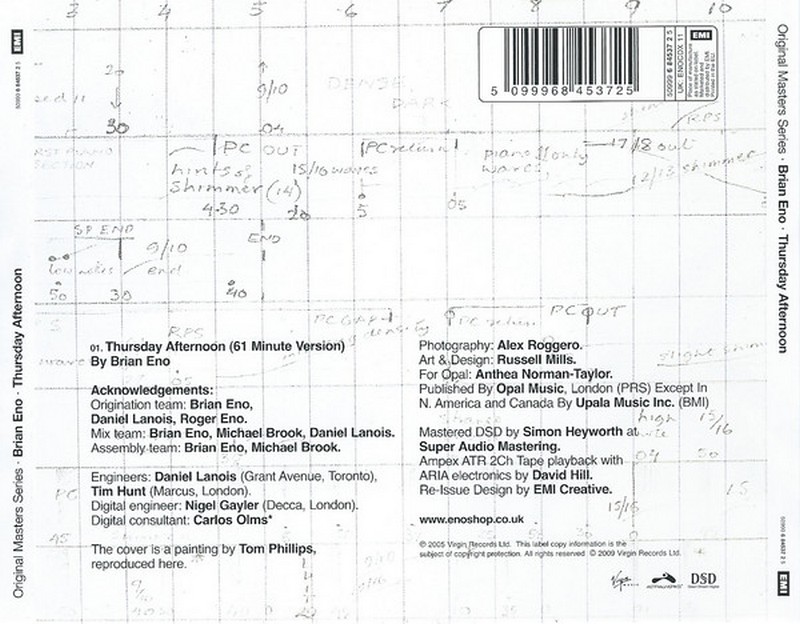 Фірмова вінілова платівка (VINYL)Thursday Afternoon is the tenth solo studio album by Brian Eno, released in October 1985 on EG Records. Consisting of one 60-minute eponymous composition, it is the rearranged soundtrack to an 80-minute video production of the same title made in 1984.