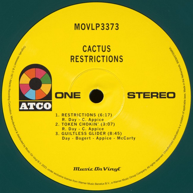 Фірмова вінілова платівка (VINYL)Restrictions is the third studio album by American rock band Cactus, released in 1971 by Atco Records. The tracks "Token Chokin'", "Evil", "Alaska" and "Sweet 16" were released as singles. The album features heavy blues-rock originals, plus a cover of the Howlin' Wolf blues standard "Evil". Stoner rock band Monster Magnet used Cactus' arrangement of the song for their own cover, which appeared on their 1993 album Superjudge.