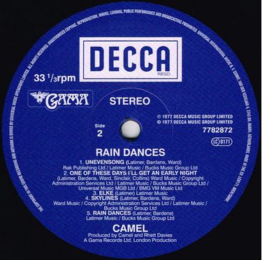 Фірмова вінілова платівка (VINYL)Rain Dances is the fifth studio album by English progressive rock band Camel. It was released in 1977 on Gama Records/Decca Records, and brought a major change to the band's lineup, by replacing bassist Doug Ferguson with ex-Caravan member Richard Sinclair and by adding saxophonist Mel Collins, formerly of King Crimson.