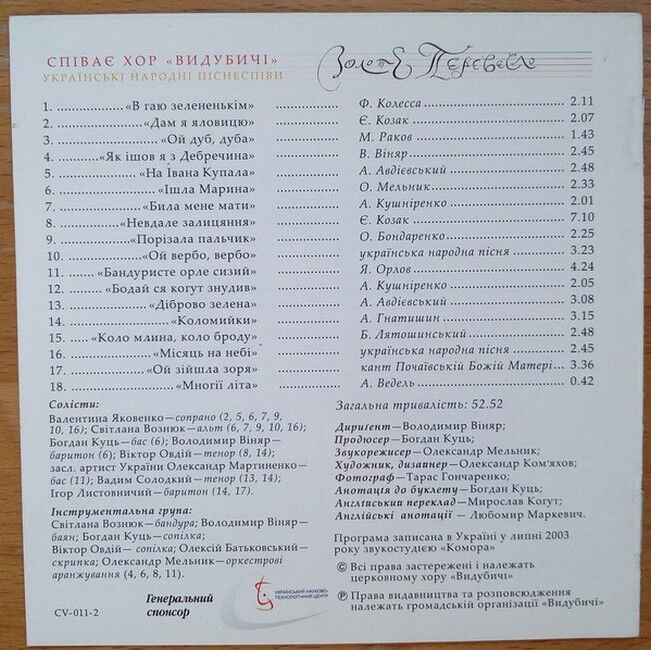 Recorded in Komora Studio Kyiv, Ukraine, July 2003.