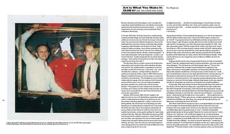 New York's East Village was alive with artistic activity in the 1970s and '80s, fueled by low rents, resistance to the Reagan presidency, and the desire to experiment with new modes of art, performance, fashion, music, and exhibition. Club 57, located in the basement of a Polish church at 57 St. Marks Place, began as a no-budget venue for music and film exhibitions and quickly became a center of the neighborhood's constellation of countercultural venues, with artists such as Keith Haring, Ann Magnuson, Klaus Nomi, Tseng Kwong Chi, John Sex, Fab 5 Freddy, John "Lypsinka" Eppperson, and Lisa Baumgardner. Fabled but not widely known until now, Club 57 is said to have influenced virtually every club that came in its wake.