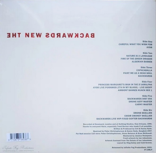 Фірмова вінілова платівка (VINYL)The New Backwards is an album by Coil released on 18 April 2008. The album is reworked from the Backwards demo, which was originally created for Nothing Records.