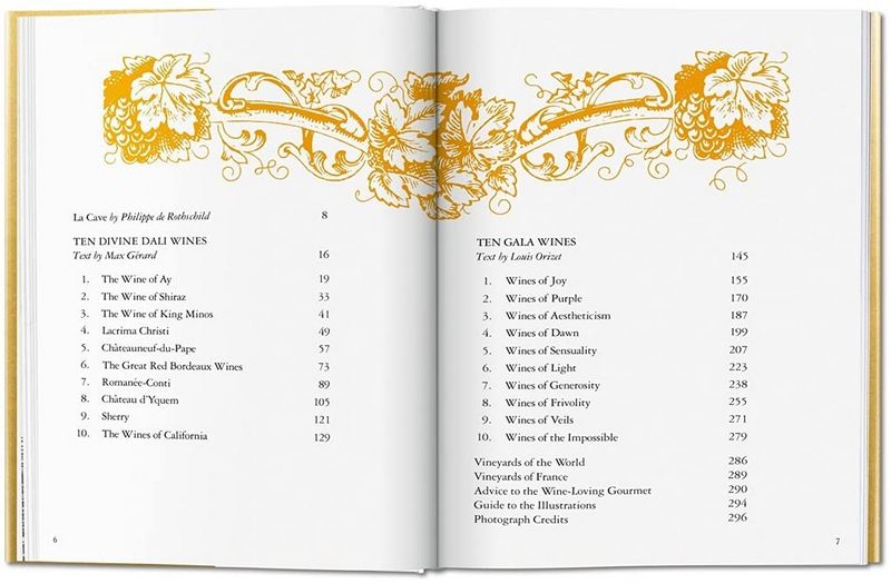 The first section is dedicated to “Ten Divine Dali Wines,” an overview of 10 important wine-growing regions, while the second develops Dali’s revolutionary ordering of wine by emotional experience, instead of by geography or variety. Rather than any prescriptive classification, it’s a flamboyant, free-flowing manifesto in favor of taste and feeling, as much a multisensory treat as a full-bodied document of Dali’s late-stage oeuvre, in which the artist both reflected on formative influences and refined his own cultural legacy.