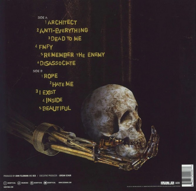 Фірмова вінілова платівка (VINYL)Mis an thrope is the debut studio album by American nu metal band Ded. It was released on July 21, 2017, produced by John Feldmann and published through Suretone Records. In December 2016, the group published a lyric video for their debut single "FMFY". In February 2017, the ensemble debuted a lyric video for their second single "Anti-Everything", with an official music video produced by Fred Durst released the following month.