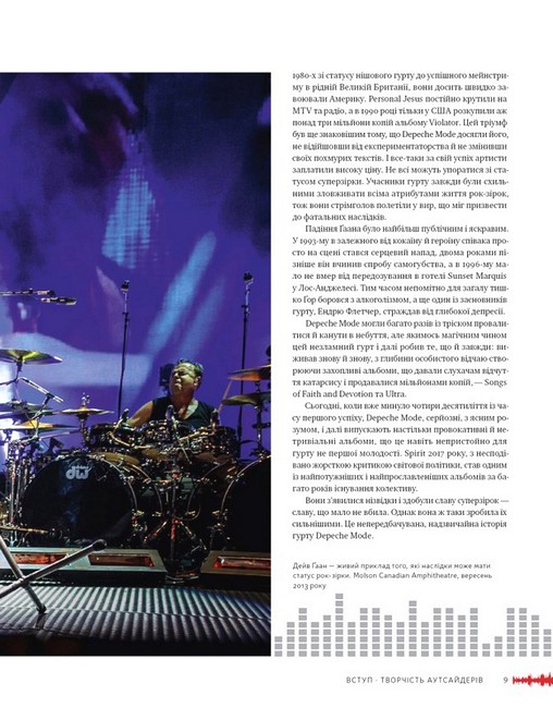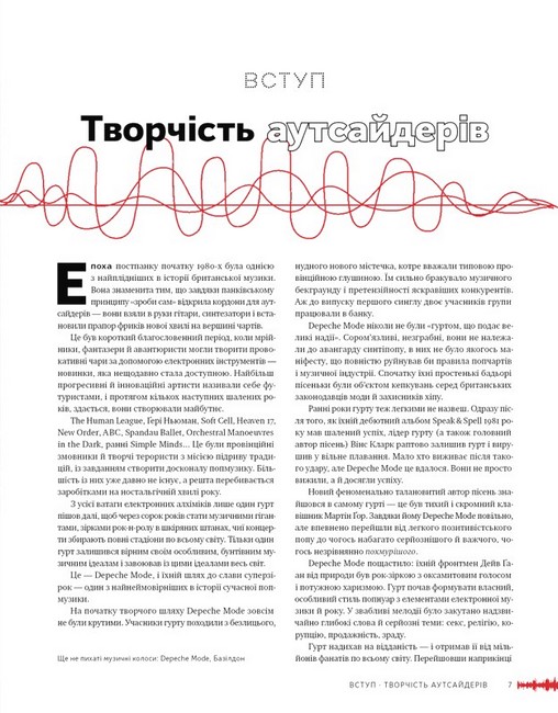 Ця книжка — спроба послідовно й без прикрас розповісти про шлях Depeche Mode. З чергуванням смуг, олімпами слави й проваллями залежності, творчими імпульсами й надривами, альбомною хронологією і яскравими фото.
