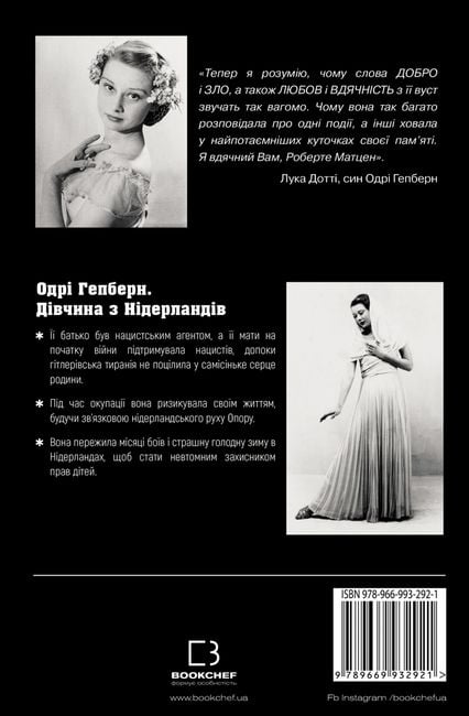 Роздобувши чимало раніше невідомих фактів, Роберт Матцен написав правдиву історію життя кінозірки в охоплених війною Нідерландах. В основі книги – інформація з архівних джерел, тогочасних газет, свідчення очевидців тих подій, інтерв’ю самої актриси. Саме війна зробила Одрі небайдужою до чужого горя, і саме вона врешті її вбила, призвівши до невиліковної хвороби.