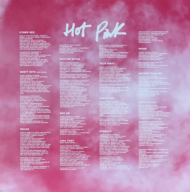 Hot Pink is the second studio album by American rapper and singer Doja Cat. It was released on November 7, 2019, by Kemosabe Records and RCA Records. A departure from the sound of her debut album Amala (2018), Hot Pink is a pop, R&B, and hip hop record containing elements of funk and soul. The albums features production from Doja herself, Yeti Beats, Tyson Trax, and others, with guest appearances from Smino, Gucci Mane, and Tyga.