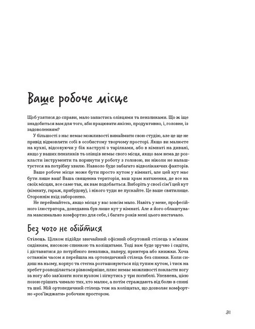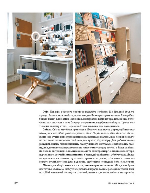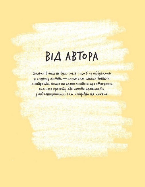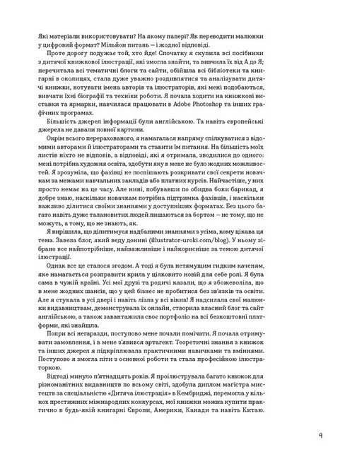 Ця книга — чудовий посібник для ілюстраторів. Вона допоможе створити власну книжку, навіть, якщо ви тільки починаєте творчий шлях. Еліна Елліс ділиться власним досвідом і розказує про всі аспекти створення дитячої ілюстрованої книги: від появи ідеї до розробки макета. Тут описані різноманітні техніки сучасної ілюстрації, види й теми дитячих книжок, структура оповіді, типи ілюстрації, розкадрування, робота з кольором і композицією та багато іншого. Авторка надихає власною історією і допомагає подолати творчі страхи. Крім цього, в книзі ви знайдете інтерв’ю з українськими та іноземними майстрами ілюстрації, які також заохотять вас на власну творчість.