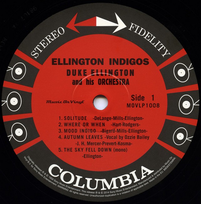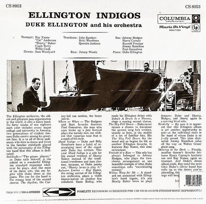 Фірмова вінілова платівка (VINYL)Ellington Indigos is a 1958 jazz album by Duke Ellington. The stereo CD reissue released by Columbia (CK 4444) in 1987 contains a track listing and cover art that is drastically different from the original mono LP. A change in song order and two "new" songs — "Night and Day" and "All The Things You Are" — were added to the CD while "The Sky Fell Down" was omitted.