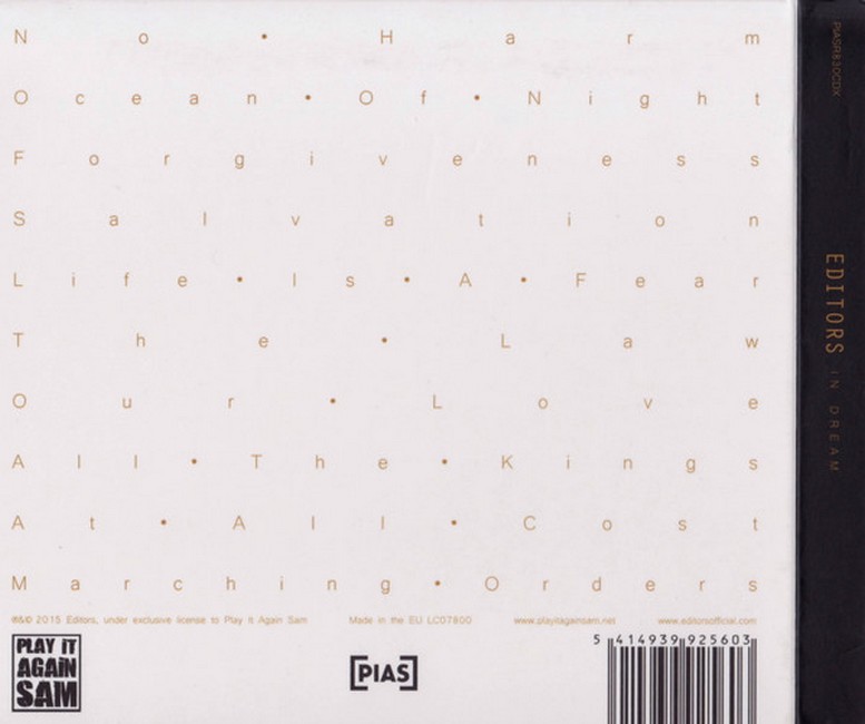 Фірмовий CD диск (CD)In Dream is the fifth studio album by British band Editors. It was produced by the band themselves and released on 2 October 2015 through PIAS Recordings.In Dream is the fifth studio album by British band Editors. It was produced by the band themselves and released on 2 October 2015 through PIAS Recordings.