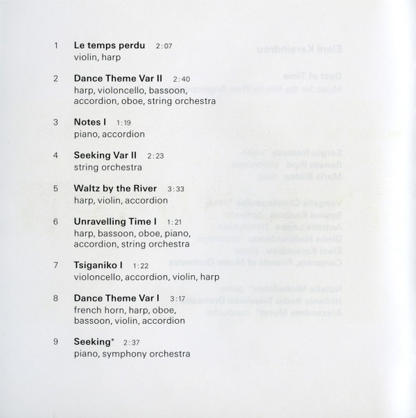 Записаний у 2009 році та випущений легендарним видавництвом ECM Records, цей альбом об'єднує класику з сучасними музичними підходами, створюючи вражаючі звукові пейзажі. Eleni Karaindrou, майстриня саундтреків, надає кожній композиції глибокий емоційний заряд, чим і здобула світове визнання.