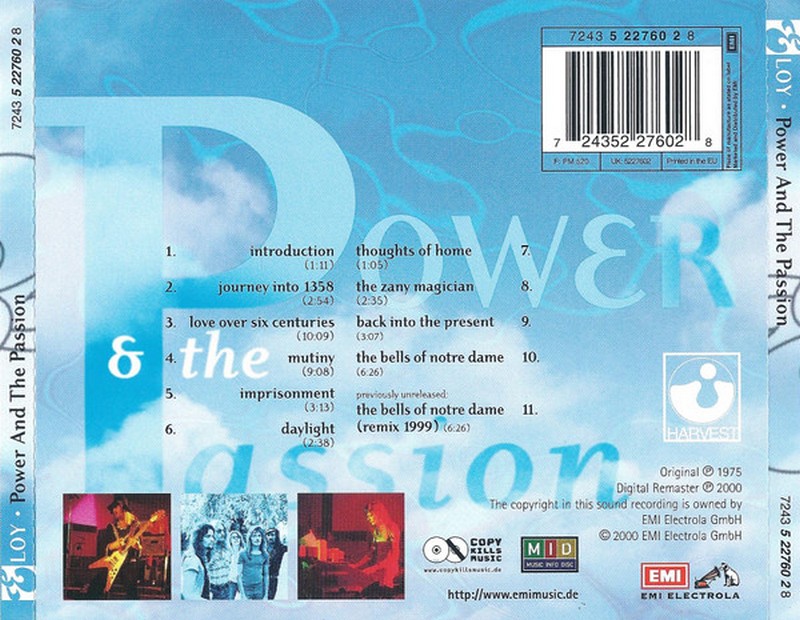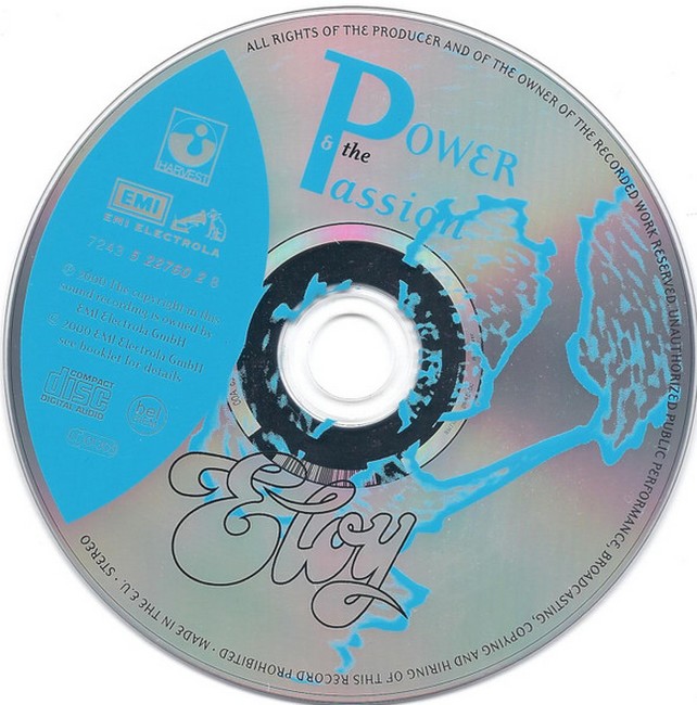 Фірмовий CD-дискPower and the Passion is the fourth studio album by the German rock band Eloy, released in 1975. The story follows Jamie, the son of a scientist, who absorbs a "time eroding" drug and finds himself in Paris, in the year 1358. He meets Jeanne, whom he introduces to marijuana. After time spent in jail following a peasants' mutiny against their landlord, Jamie finds an eccentric magician that sends him back to his own time frame.