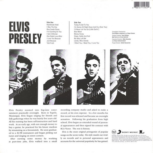 Фірмова вінілова платівка (VINYL)Elvis Presley is the debut studio album by American rock and roll singer Elvis Presley. It was released by RCA Victor, on March 23, 1956. The recording sessions took place on January 10 and January 11 at the RCA Victor Studios in Nashville, Tennessee, and on January 30 and January 31 at the RCA Victor studios in New York. Additional material originated from sessions at Sun Studio in Memphis, Tennessee, on July 5, August 19 and September 10, 1954, and on July 11, 1955.