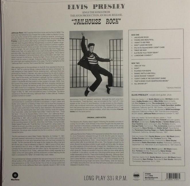 Фірмова вінілова платівка (VINYL)Jailhouse Rock is an EP by American singer Elvis Presley, featuring songs from the movie of the same name. It was released by RCA Victor, with catalogue EPA 4114, on October 30, 1957. Recording sessions took place at Radio Recorders in Hollywood on April 30 and May 3, 1957, with an additional session at the Metro-Goldwyn-Mayer Soundstage in Hollywood on May 9 for "Don't Leave Me Now". It peaked at #1 on the newly inaugurated Billboard EP chart where it remained at #1 for 28 weeks. The EP album was the best selling EP album of 1958 according to Billboard.