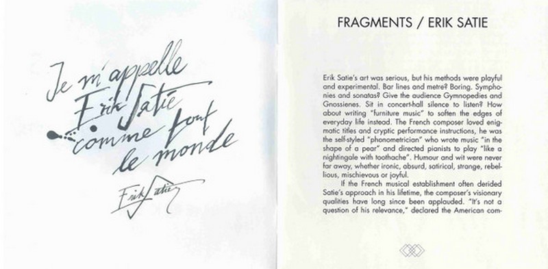 Фірмовий CD диск (CD)Eric Alfred Leslie Satie (17 May 1866 – 1 July 1925), who signed his name Erik Satie after 1884, was a French composer and pianist. He was the son of a French father and a British mother. He studied at the Paris Conservatoire, but was an undistinguished student and obtained no diploma. In the 1880s he worked as a pianist in cafe-cabaret in Montmartre, Paris, and began composing works, mostly for solo piano, such as his Gymnopedies and Gnossiennes. He also wrote music for a Rosicrucian sect to which he was briefly attached.