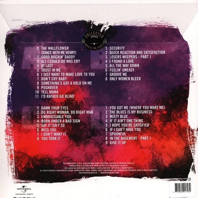 Фірмова вінілова платівка (VINYL)Jamesetta Hawkins (January 25, 1938 – January 20, 2012), known professionally as Etta James, was an American singer who performed in various genres, including gospel, blues, jazz, R&B, rock and roll, and soul. Starting her career in 1954, she gained fame with hits such as "The Wallflower", "At Last", "Tell Mama", "Something's Got a Hold on Me", and "I'd Rather Go Blind". She faced a number of personal problems, including heroin addiction, severe physical abuse, and incarceration, before making a musical comeback in the late 1980s with the album Seven Year Itch.