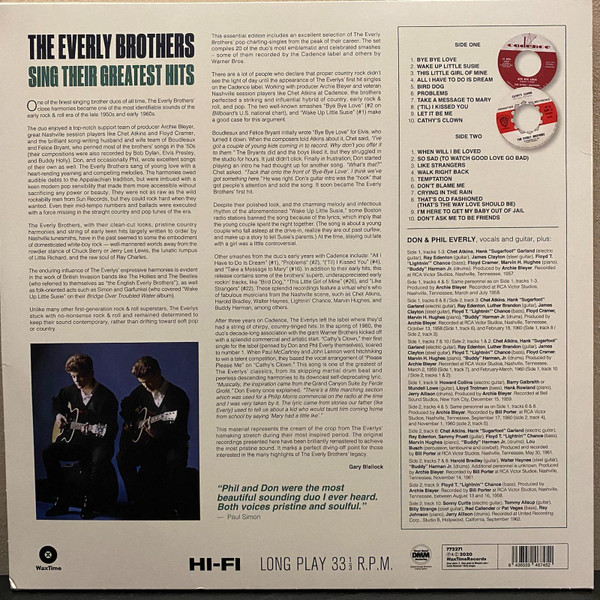 Альбом "Sing Their Greatest Hits" зафіксував найяскравіші хіти легендарних The Everly Brothers, які вважаються іконами жанру Rock & Roll та Country Rock. Вплив The Everly Brothers на музичну індустрію неможливо переоцінити; їхні гармонії та мелодії вплинули на багатьох відомих виконавців.