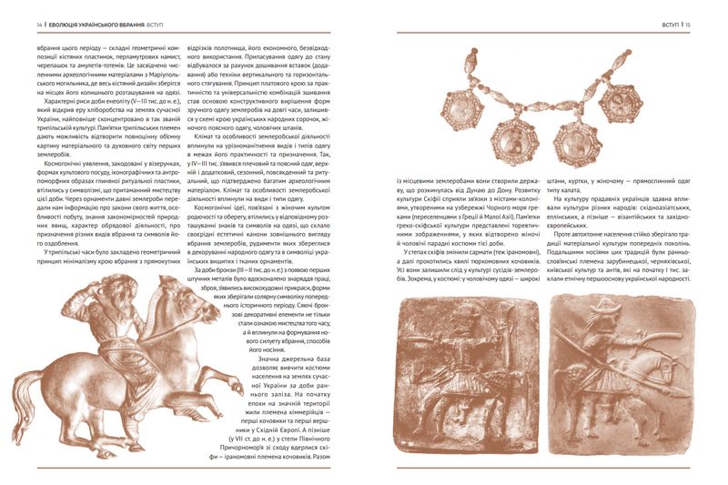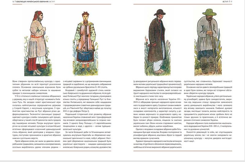 Історія українського вбрання налічує не одне тисячоліття. Ще за сивої давнини наш народ створював самобутні зразки одягу, взуття й аксесуарів, що втілилися в подальших варіантах традиційного костюма. У різні часи на різних теренах українське вбрання розвивалося по-своєму, збагачувалося оригінальними рисами, притаманними населенню тієї чи іншої місцевості, всотувало досвід і естетику різномантних культур. Історія вбрання невіддільна від історії народу, від його психологічних, естетичних, духовних прагнень, невичерпного творчого потенціалу.