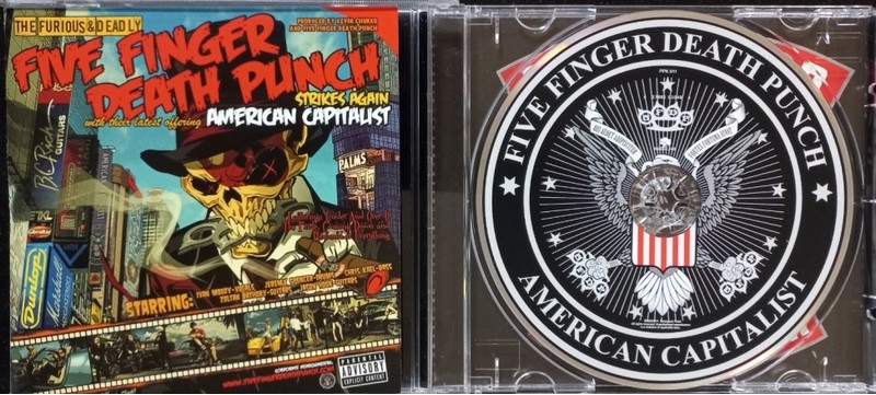 Фірмовий CD-дискAmerican Capitalist is the third studio album by American heavy metal band Five Finger Death Punch, released on October 11, 2011. It is the band's first album not to feature bassist Matt Snell, as he departed from the band in December 2010. The first single from the album entitled "Under and Over It", was released on July 27, 2011.