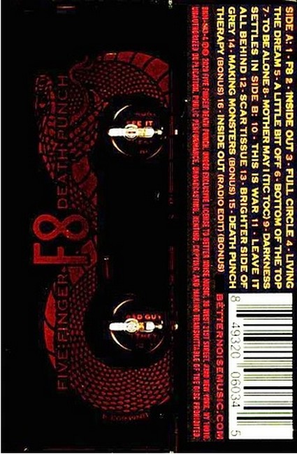 Ліцензійна касета (Cassette)F8 is the eighth studio album by American heavy metal band Five Finger Death Punch, released on February 28, 2020. It is the first Five Finger Death Punch album to feature drummer Charlie Engen, who joined the band following the departure of founding drummer Jeremy Spencer, and final album with guitarist Jason Hook. F8 is also the band's first album to be released through Better Noise Music.