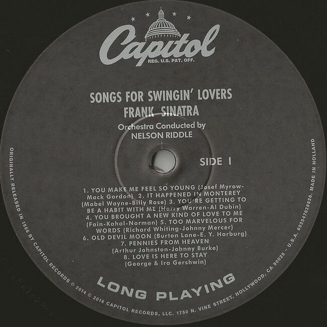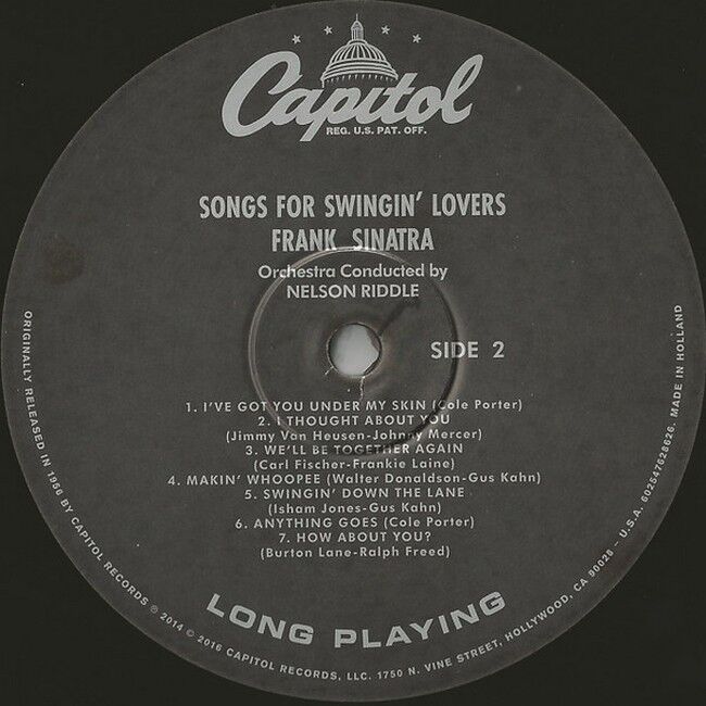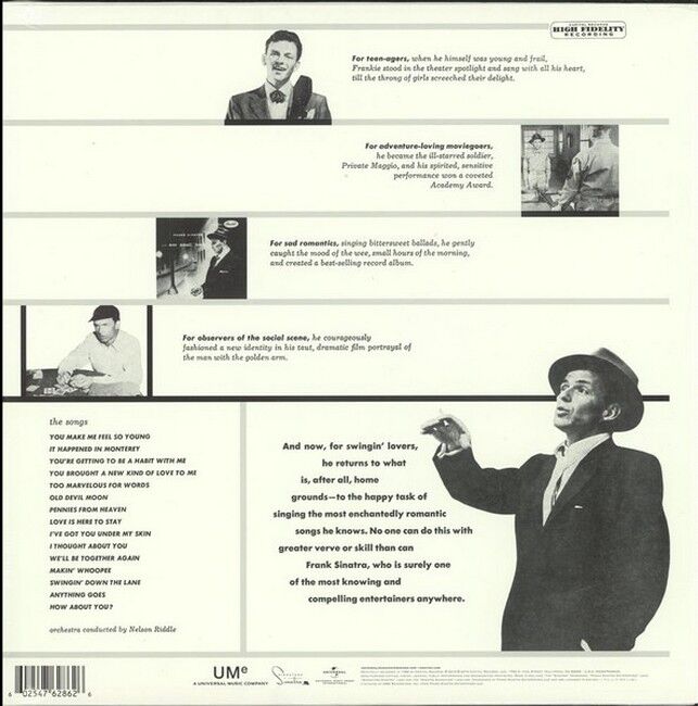 Фірмова вінілова платівка (VINYL)Songs for Swingin' Lovers! is the tenth studio album by American singer Frank Sinatra, and his fourth for Capitol Records. It was arranged by Nelson Riddle and released in March 1956 on LP and January 1987 on CD. It was the first album ever to top the UK Albums Chart.