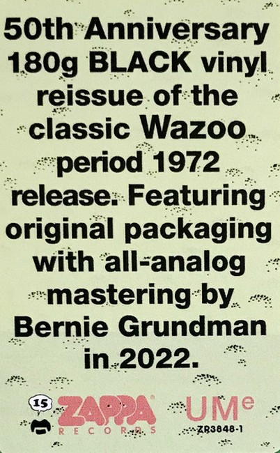 Ця платівка – справжній зразок колекціонування. Видана у 2022 році лейблом Zappa Records, вона зберігає всі критерії колекціонерського релізу: альбом залишається в стані "Still Sealed", що гарантує його ідеальний стан. З упаковкою у типовий конверт, ця платівка зберегла класичні традиції вінілових випусків, а GTIN 602448139726 гарантує її унікальність і автентичність.
