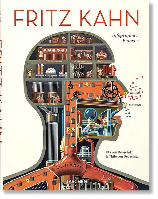 Fritz Kahn (1888–1968) was a German doctor, educator, popular science writer, and information graphics pioneer. Chased out of Germany by the Nazis, who banned and burned his books, Kahn emigrated to Palestine, then France, and finally the United States to continue his life’s work.