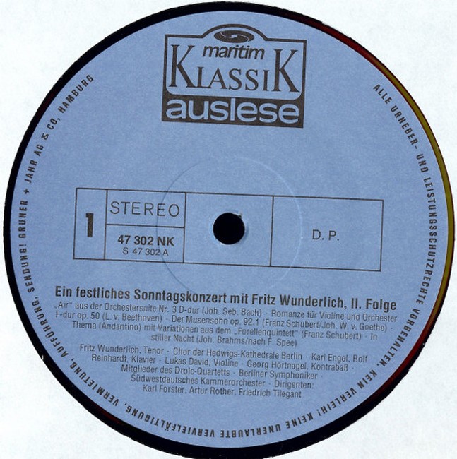 | Виконавець | Fritz Wunderlich, Bach, Schubert, Beethoven |