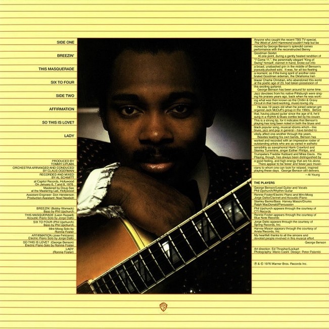 Фірмова вінілова платівка (VINYL)Breezin' is the fifteenth studio album by jazz/soul guitarist and vocalist George Benson. It is his debut on Warner Bros. Records. It not only was a chart-topper in the Jazz category but also went to #1 on the pop and R&B charts. It was certified triple platinum, making it one of the best-selling jazz albums of all time.
