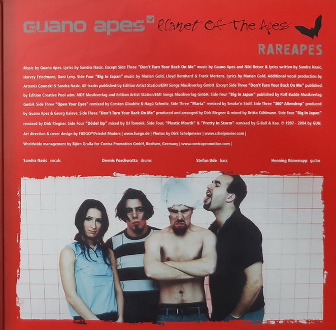 Фірмова вінілова платівка (VINYL)Guano Apes are a German rock band formed in 1994 in Gottingen. The band consists of Sandra Nasic (vocals), Henning Rumenapp (guitars, backing vocals), Stefan Ude (bass, backing vocals), and Dennis Poschwatta (drums, backing vocals).