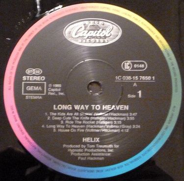 Long Way to Heaven is the fifth studio album by the Canadian hard rock/heavy metal band Helix. This album was their third for Capitol Records, and there were bigger expectations from the band after the success of the previous Walkin' the Razor's Edge (featuring the hit "Rock You"). The first single was "Deep Cuts the Knife", co-written by Paul Hackman and Bob Halligan Jr. The song received heavy airplay in the U.S., gaining "double breaker" status, and in Canada was added to heavy video play on MuchMusic. Q107 in Toronto had the song riding at number 1 for several weeks on their "Top Ten at Ten". Their first tour to kick off the album was in Sweden where they became the first Canadian rock band ever to tour that country extensively. For this they achieved their first number 1 album in that country.