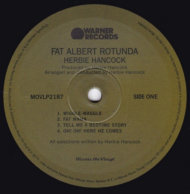 Фірмова вінілова платівка (VINYL)Fat Albert Rotunda is the eighth album by jazz keyboardist Herbie Hancock, released in 1969. It was Hancock's first release for Warner Bros. Records after his departure from Blue Note Records. The music was originally done for the TV special Hey, Hey, Hey, It's Fat Albert, which later inspired the Fat Albert and the Cosby Kids TV show.