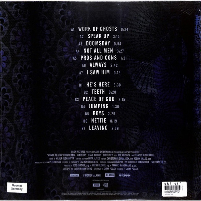 Фірмова вінілова платівка (VINYL)Women Talking (Original Motion Picture Soundtrack) is the score album composed by Hildur Gudnadottir for the 2022 film of the same name, directed by Sarah Polley, based on the 2018 novel of the same name by Miriam Toews. The film stars Rooney Mara, Claire Foy, Jessie Buckley, Judith Ivey, Ben Whishaw, and Frances McDormand, who also serves as the producer. Hildur described the score as one of the optimistic music, she composed for a horrific subject which is relevant in the current period, referring to sexual assault against women. Hildur collaborates with Skuli Sverrisson who provides guitar solos.